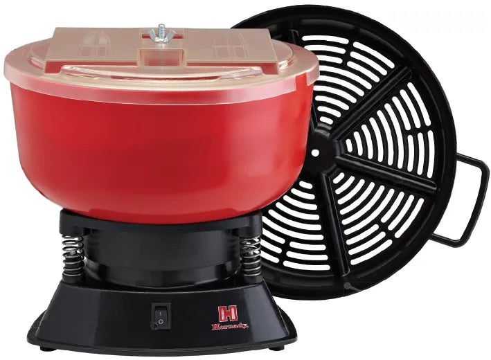 In Verbindung mit Hornady® Tumbling Media reinigt die Zyklon- und Vibrationswirkung des Tumblers Messing zu einem brillanten Glanz. Verwenden Sie das mitgelieferte Sieb, um das polierte Messing von den Medien zu trennen. Die Laufzeit variiert je nach Zustand der Hülsen und dem gewünschten Sauberkeitsgrad.
